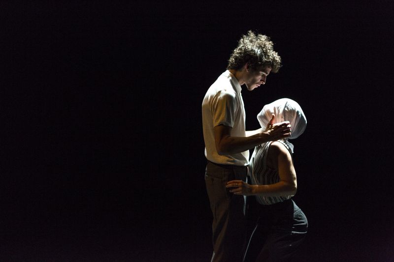 Il faut tout d’abord mentionner le caractère sombre de la pièce qui incarne parfaitement l’ambiance du film noir américain. De forts contrastes marquent les jeux de lumières, nous laissant par moments complètement plongé·e·s dans l’obscurité. Le décor, très sobre, traduit un espace assez restreint duquel il semble impossible de s’échapper. Les acteurs·trices nous jaugent et se scrutent eux/elles-mêmes, sans cesse. Dès le début de la pièce, une forte tension se ressent, qui ne fera que s’amplifier au fil des scènes. Cette ambiance noire teintée de méfiance est intensifiée par la brutalité de certains volets qui mettent en scène une femme et un homme. Même si l’univers est spécifique à l’époque que la chorégraphe a voulu représenter, certaines scènes résonnent au fond de nous et nous amènent inévitablement à nous questionner nous-mêmes sur les rapports de genre qui constituent notre société.